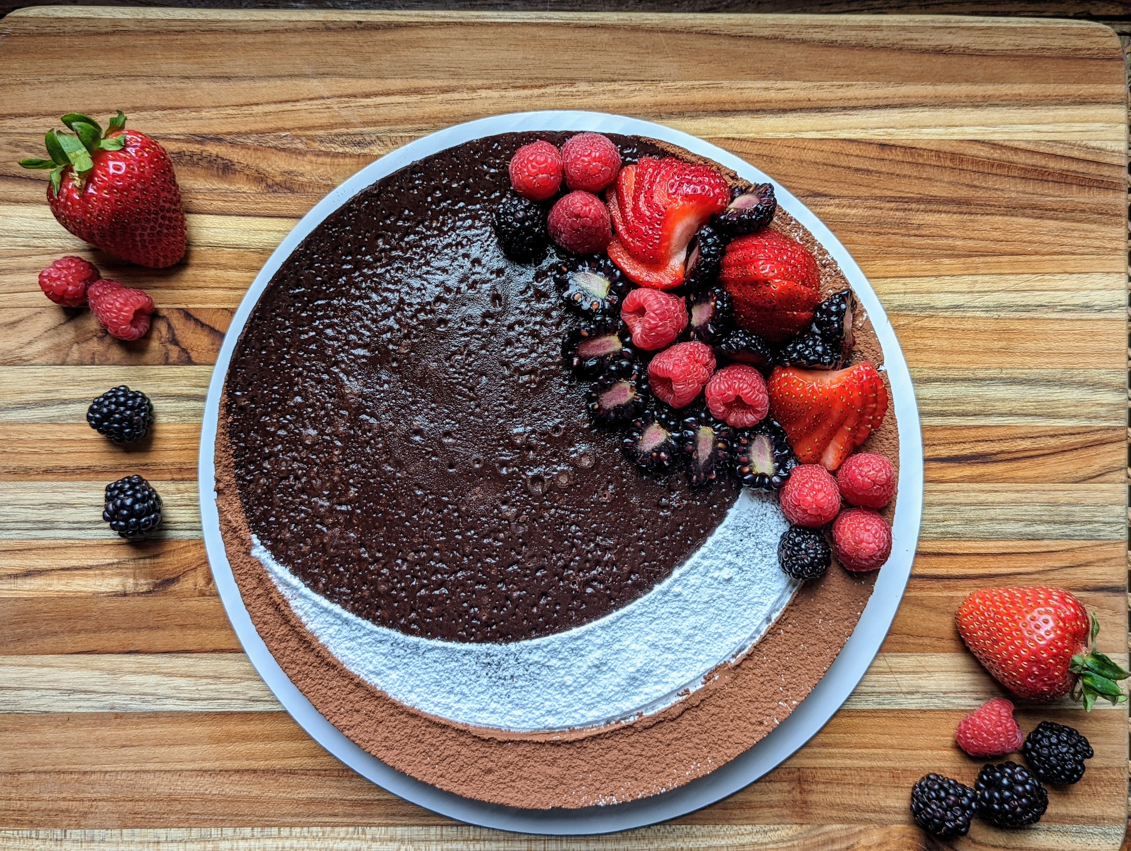 Rich and creamy maple walnut cheesecake on a maple sugar graham cracker base, topped with dollops of maple buttercream, walnut pieces, maple sugar pieces and a healthy pour of dark maple syrup
